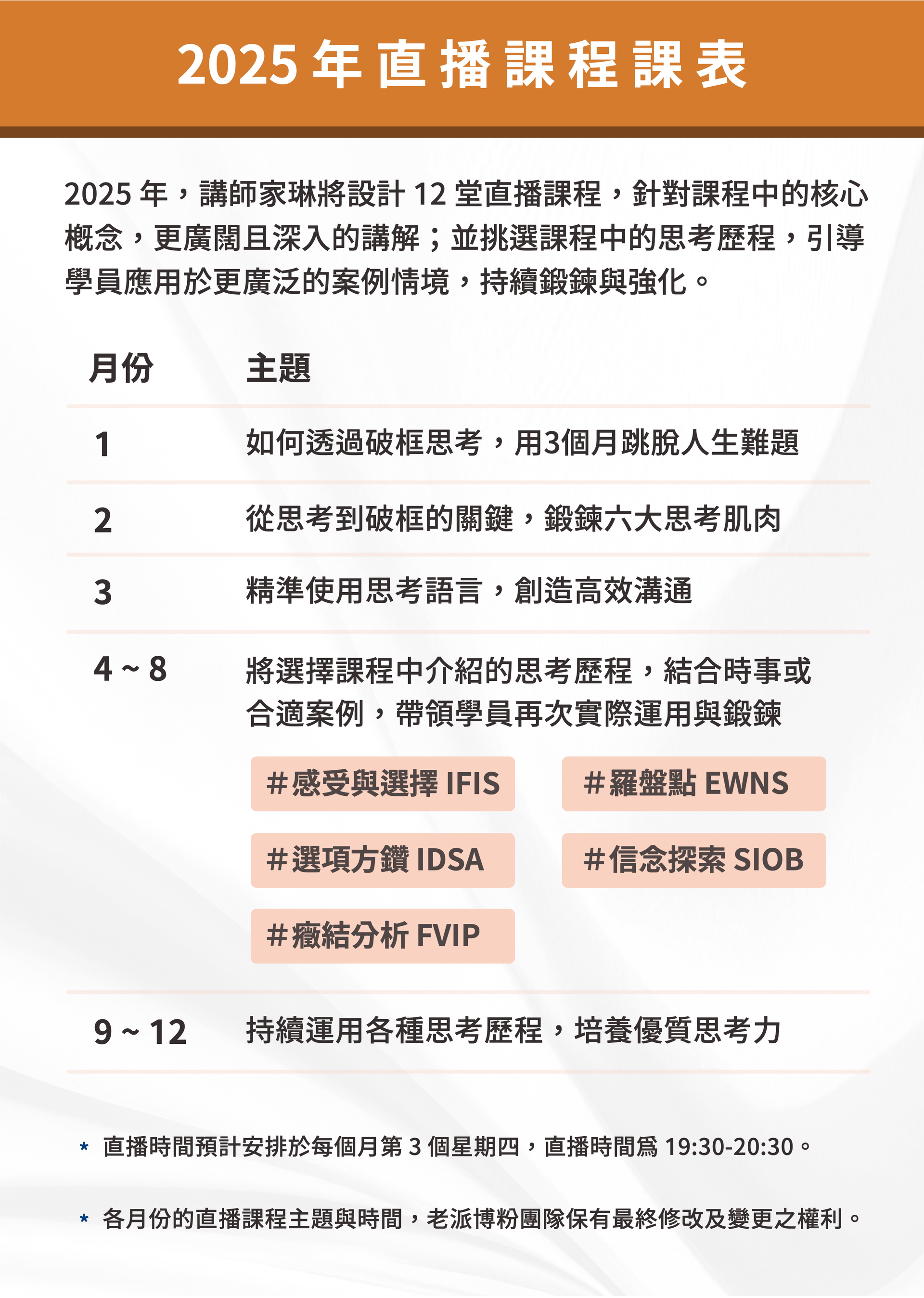 錯過直播沒關係,購買此方案後,可重複觀看直播錄影回放影片 *請忽略結帳頁面地址欄位,毋須填寫