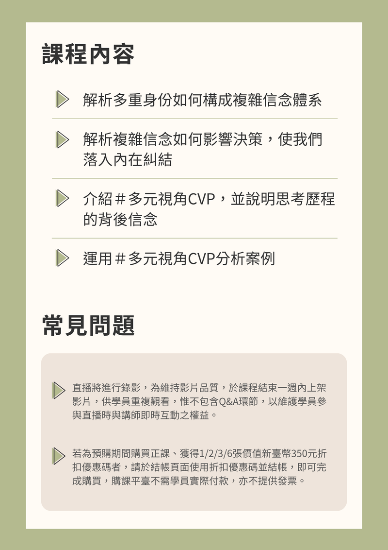 以生活案例,帶領學員應用思考歷程#多元視角CVP
