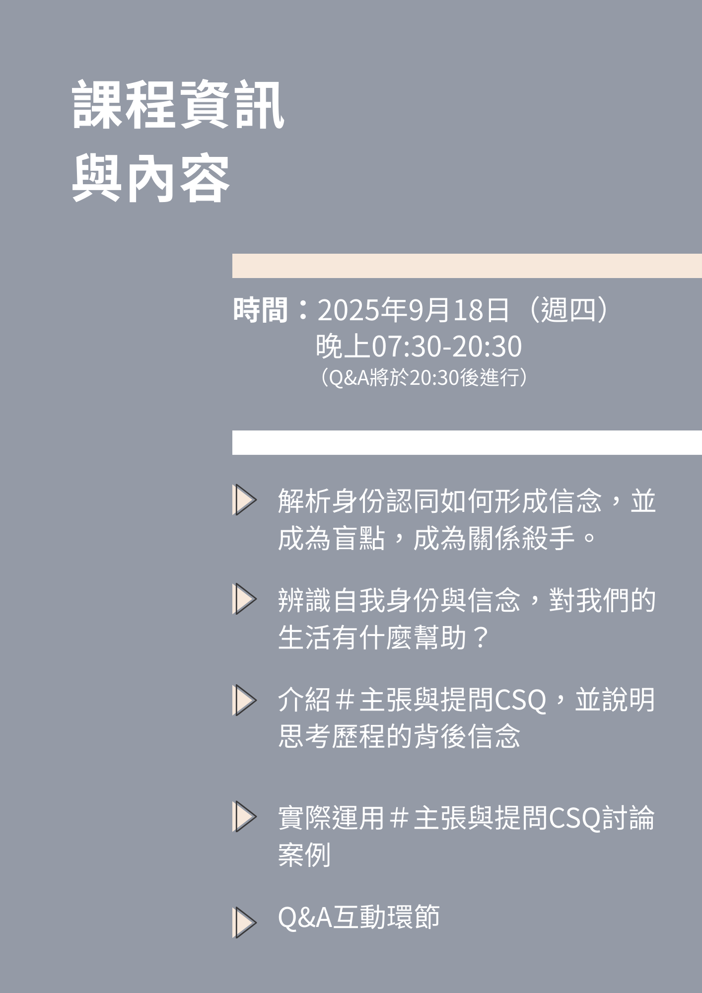 以生活案例,帶領學員靈活應用思考歷程#主張與提問CSQ
