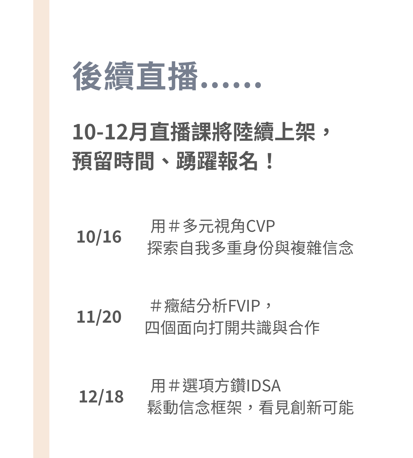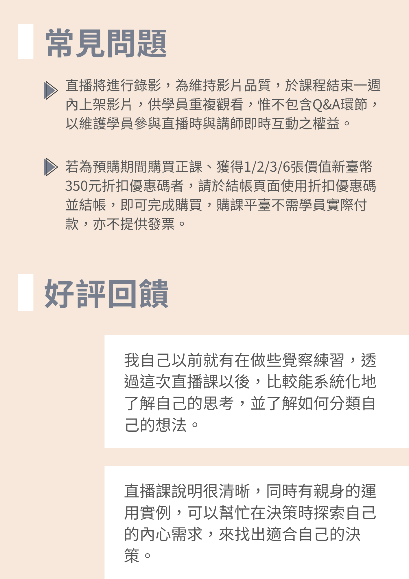 錯過直播沒關係,購買此方案後,可重複觀看直播錄影回放影片 *請忽略結帳頁面地址欄位,毋須填寫